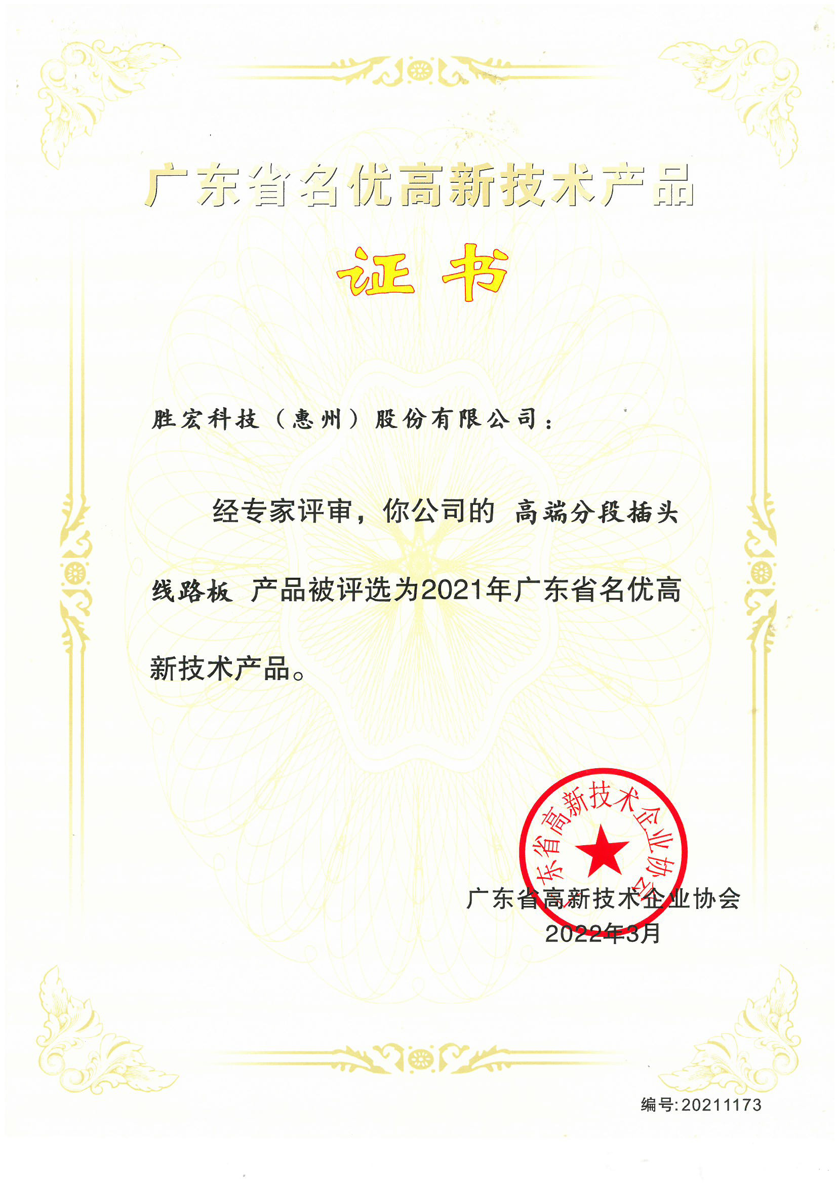 「ハイエンドセグメントプラグPCB」中国名優高新技術製品証明書